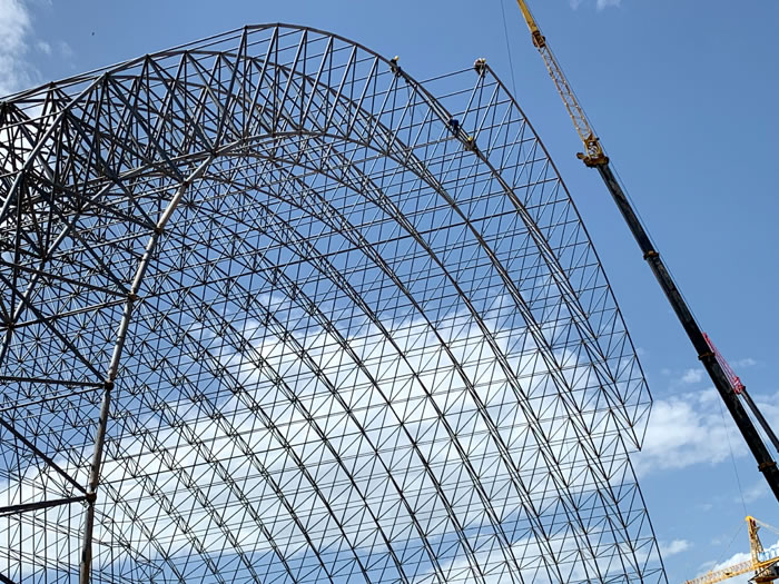 (2)网架加工前应对现场尺寸进行复测,确认无误后方可进行加工、安装;网架制作、运输、安装应遵守《空间网格结构技术规程》JGJ7-2010、《钢网架山西螺栓球节点》JG/T 10-2009、《钢网架山西螺栓球节点用高强度螺栓》 GB/T 16939-2016、《山西钢结构山西工程山西施工规范》 GB50755-2012、《山西钢结构山西工程施工质量验收标准》 GB50205-2020。